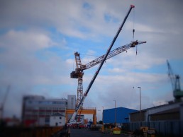 Montage des neuen Werftkranes bei der Lürssen Werft, Bremen